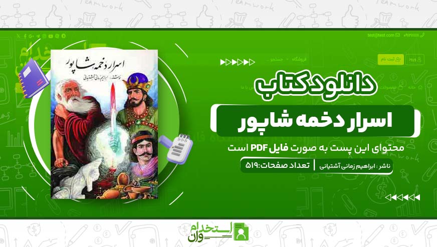 وب سایت استخدام وان دانلود فایل پی دی اف کتاب اسرار دخمه شاپور کتاب ” اسرار دخمه شاپور ” در 519 صفحه به رشته تحریر درآمده و به تمامی شما عزیزان تقدیم می گردد. آیا به دنبال رمانی پر از رمز و راز، ماجراجویی و تاریخ هستید؟ “اسرار دخمه شاپور” اثر ابراهیم زمانی آشتیانی شما را به دل کوه های باستانی ایران می برد تا در کنار گروهی از جستجوگران، گنجینه ای پنهان را کشف کنید. این رمان با زبانی شیوا و روایتی جذاب، شما را در دنیایی مملو از اسرار، موجودات اساطیری و معماری شگفت انگیز غرق می کند. در سایت استخدام وان با ما همراه باشید.