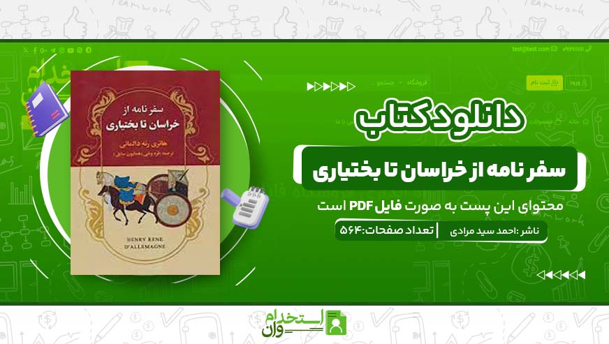 وب سایت استخدام وان پی دی اف کتاب سفر نامه از خراسان تا بختیاری، احمد سید مرادی کتاب “سفر نامه از خراسان تا بختیاری” در 564 صفحه به رشته تحریر درآمده و به تمامی شما عزیزان تقدیم می‌ گردد. این کتاب یک اثر ترکیبی است که در آن جنبه‌ های مختلف جغرافیایی، فرهنگی، اجتماعی و تاریخی ایران بویژه در دو منطقه مهم خراسان و بختیاری بررسی شده است که در سایت استخدام وان با ما همراه باشید.